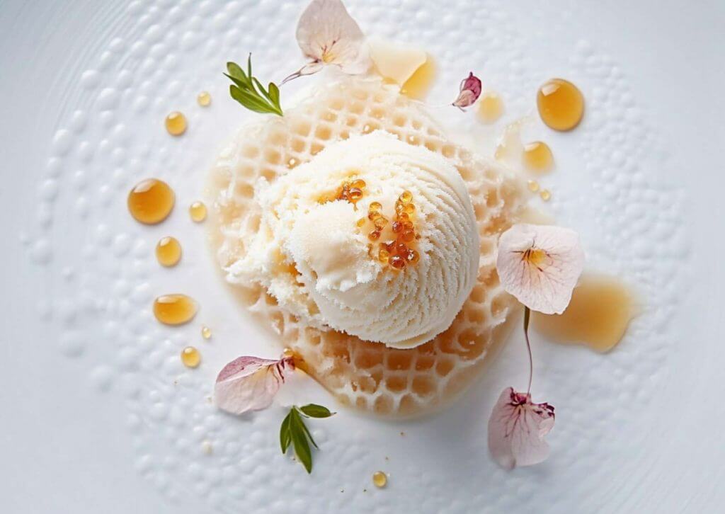 Les glaces salées se prêtent particulièrement bien aux présentations élégantes. Servir une boule de glace au fromage avec un filet de vinaigre balsamique, des herbes fraîches ou des fruits secs apporte une touche sophistiquée et délicieuse. Pour les saveurs comme le basilic, le thym, ou même le wasabi, n’hésitez pas à ajuster selon votre goût avant de congeler la base. Les saveurs salées ont tendance à être plus intenses, donc goûtez bien le mélange avant de le verser dans le récipient.