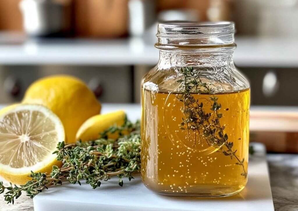 Aquí tienes un jarabe único y refrescante que añadirá un toque sofisticado a tus postres helados Ninja Creami. ¡Con este jarabe de limón y tomillo, tus creaciones serán tan sorprendentes como deliciosas!